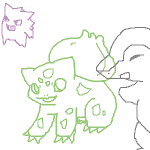 ざざっと描いたフシギダネ、ヒノアラシ、ゲンガー